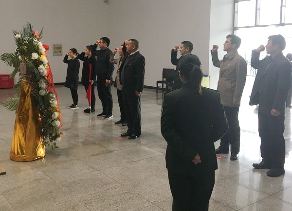 首先,全體黨員來到云嶺新四軍史料陳列館。在入口處,舉行了向革命先烈敬獻花籃儀式。深情的《獻花曲》中,支部書記王克山神情莊重,緩步上前,悉心整理花籃緞帶,全體黨員深深三鞠躬,表達了對革命先烈的深切緬懷和無限敬仰。接著,面對鮮紅的黨旗,在王克山領誓下,全體黨員舉起右拳,重溫了入黨誓詞。錚錚誓言久久回蕩,表達了全體黨員“不忘初心、牢記使命”的堅定政治信念。