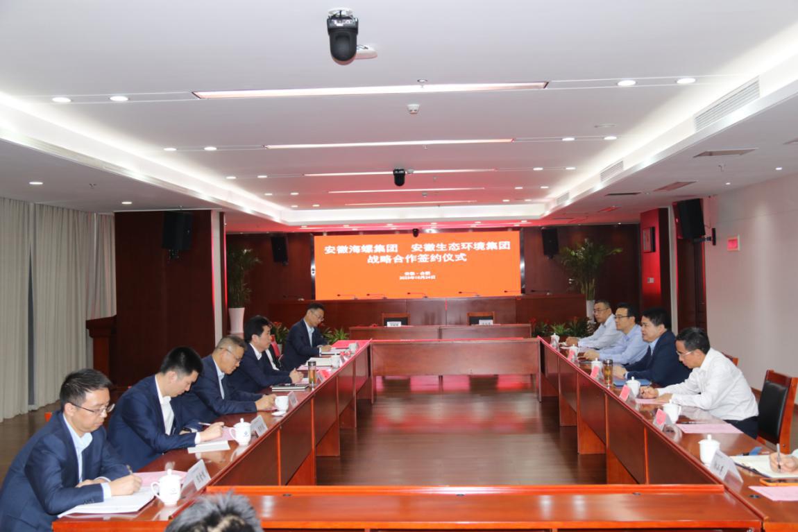 省生態環境集團黨委委員、副總經理王奇,海螺集團黨委委員、副總經理吳斌代表雙方簽署戰略合作協議。安徽環境科技集團、安徽順朝公司、海螺水泥、海螺環保以及雙方有關部門負責同志參加會議。