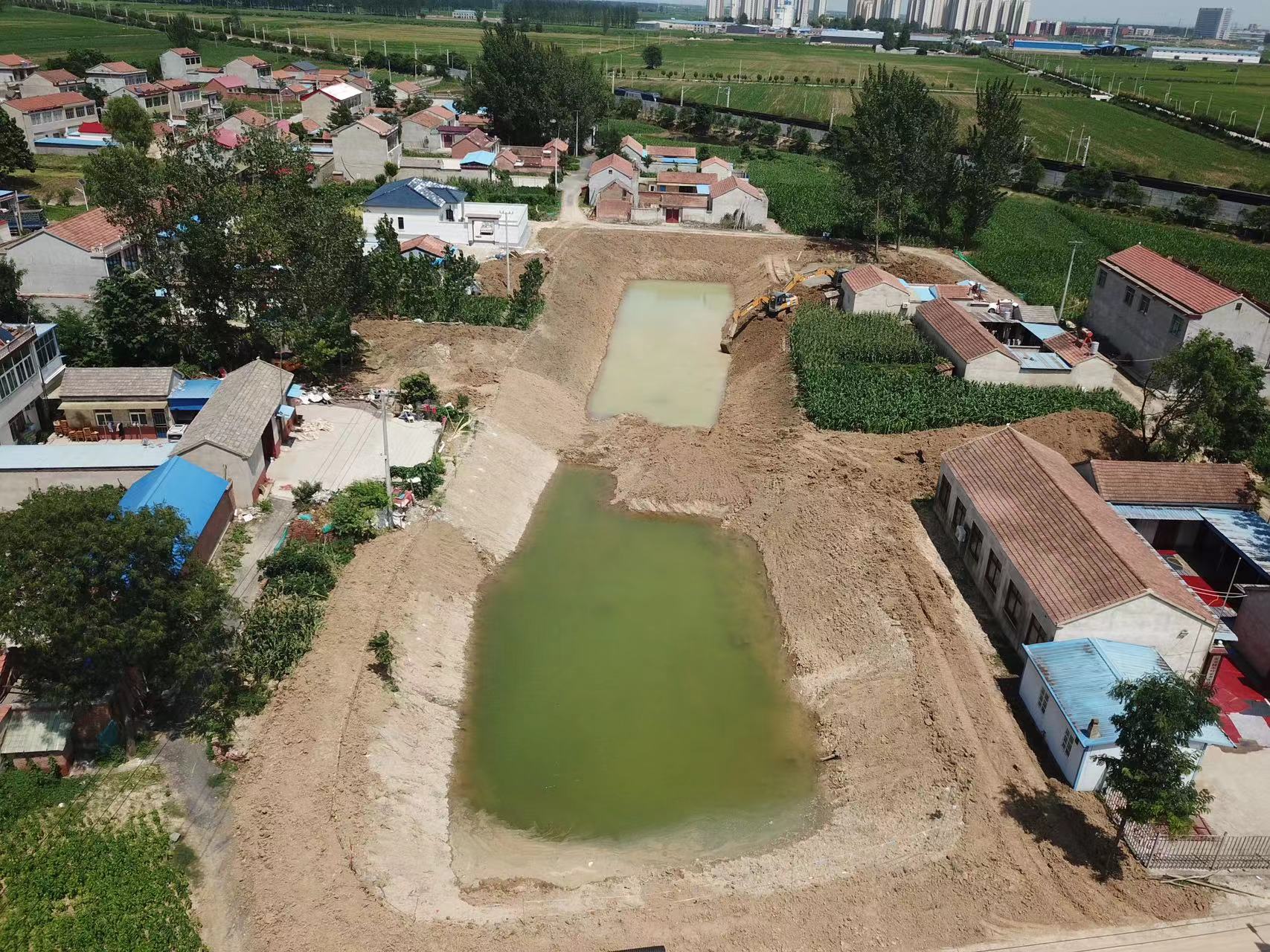 環境科技集團為改善這一現狀,提升村民幸福感,自主設計生態修復、內源治理等治理方案。通過清淤、清雜、清垃圾、邊坡修整,塘中放置人工浮島(種植水芹),邊坡采用植物護坡等措施,致力于把黑臭坑塘建成水清、岸綠、景美村民休閑娛樂的好地方,成為全縣名副其實的黑臭水體治理示范點。該項目于7月8日進場施工,受近期當地強降雨影響,截止到7月23日,形象進度約完成60%,水體內源治理、邊坡修整及排水渠建設完成70%。