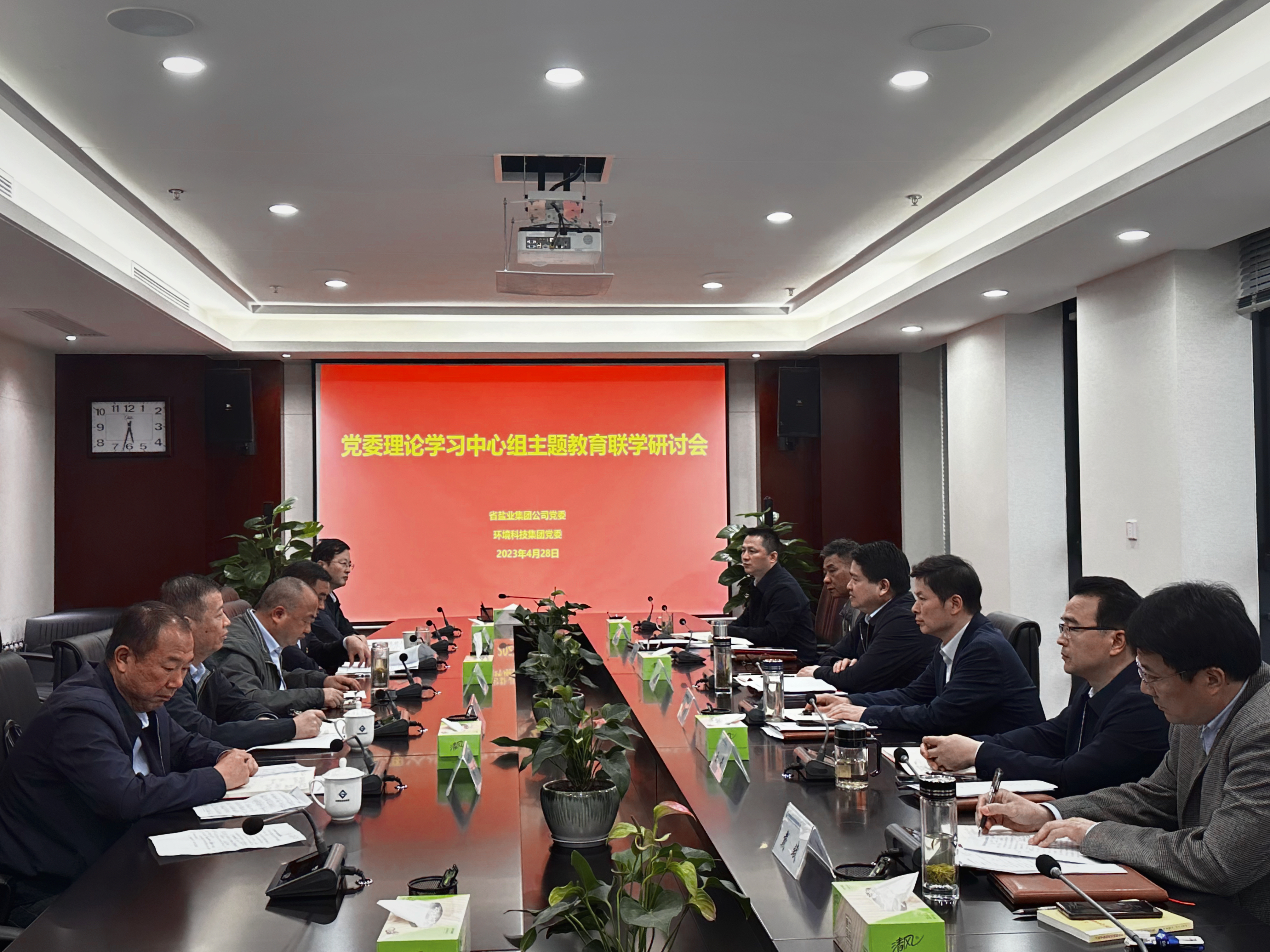 集中聽取輔導報告后,集團公司黨委理論學習中心組與環境科技集團黨委理論學習中心組,圍繞貫徹落實習近平生態文明思想,更好發揮環境科技集團在省生態環境產業集團的功能作用、加快推進轉型升級,開展了聯學研討。環境科技集團黨委理論學習中心組成員立足企業發展實際,圍繞自身產業發展優勢、目前存在的問題以及下一步重點工作打算,依次作了交流發言,集團公司黨委理論學習中心組成員結合分管領域,對會上提出的意見建議,做了交流發言。