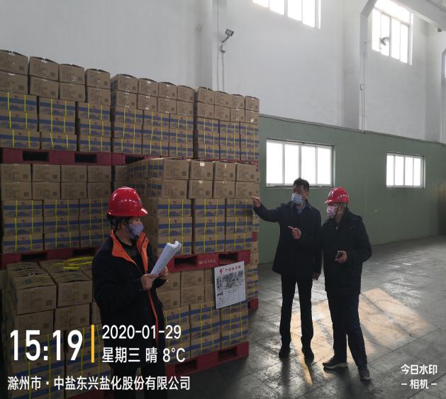 1月31日,省鹽業集團公司黨委書記、董事長馬占文,副總經理邱軍赴合肥市鹽業公司了解疫情期間食鹽供應情況,慰問一線員工,要求各市縣鹽業公司強化擔當,在非常時期扛起非常之責,全力保障食鹽供應和支持配合全省疫情防控工作。